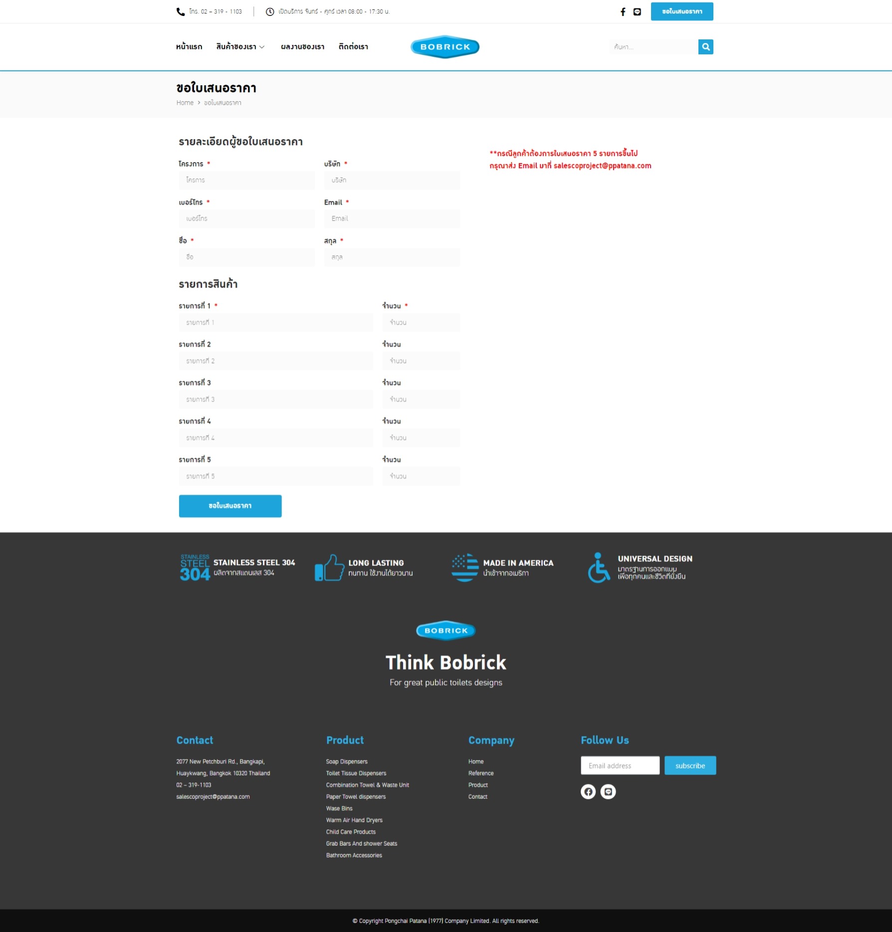 ขอใบเสนอราคาผ่านหน้าเว็บได้